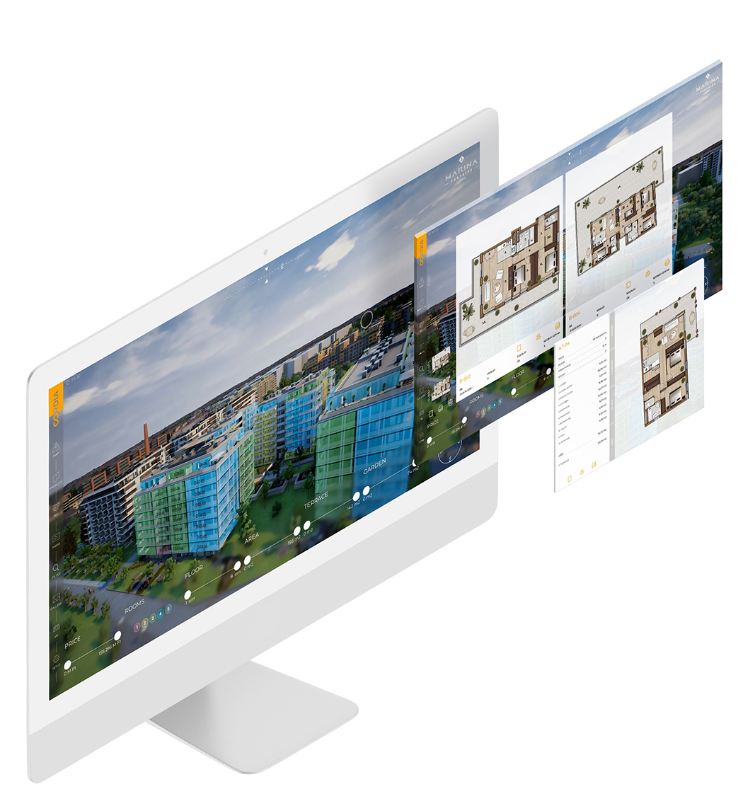 The sales and marketing offer consisted of our Interactive Sales Engine for touchscreen and for web with real-time 3D search functionality, animations, 360° panoramic tours and conventional rendered still images.